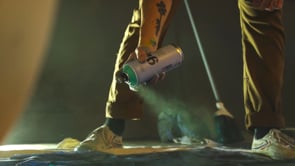 Layers and layers of broom swept watercolor prints were wheat-pasted to the hull of a small reclaimed rowboat. Distressed panting, wheatpaste, and neon lighting, all came together to create a suspended piece that hung from three old trees in Freeway Park.